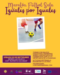 La juventud de Umbrete participa en el maratón de fútbol “Iguales por Iguales”, una actividad que combina deporte, convivencia e igualdad de género. Son las y los jóvenes quienes impulsan el evento, planteándose como una forma de relacionarse, aprender y promover mensajes de corresponsabilidad y sostenibilidad.